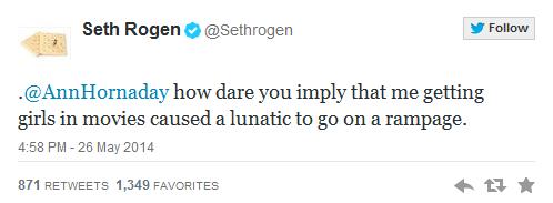Having specifically mentioned the movie Neighbours as an example, lead actor Seth Rogen took umbrage and started blasting Hornaday on twitter.